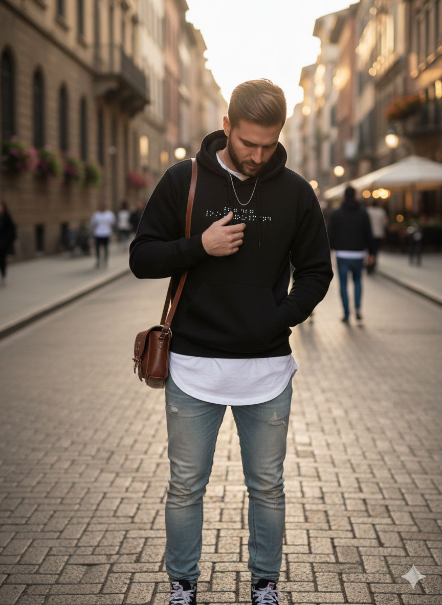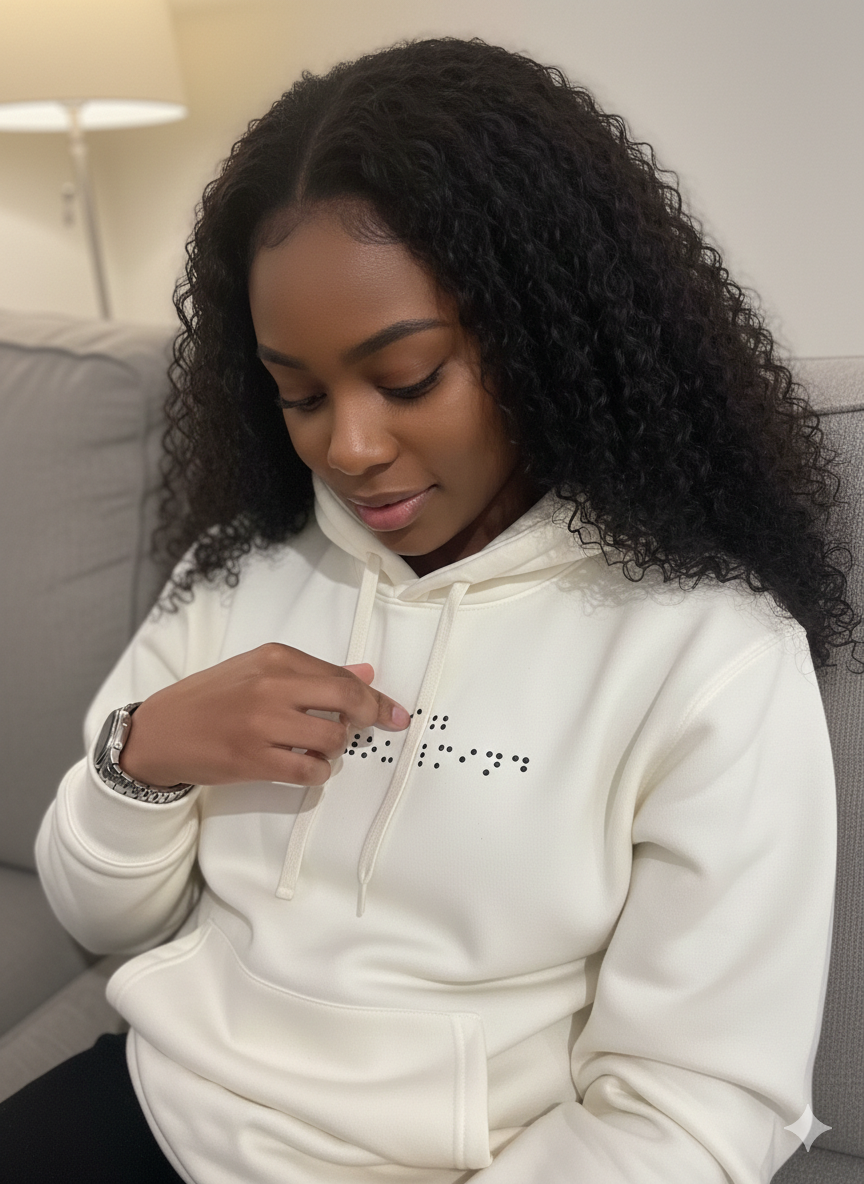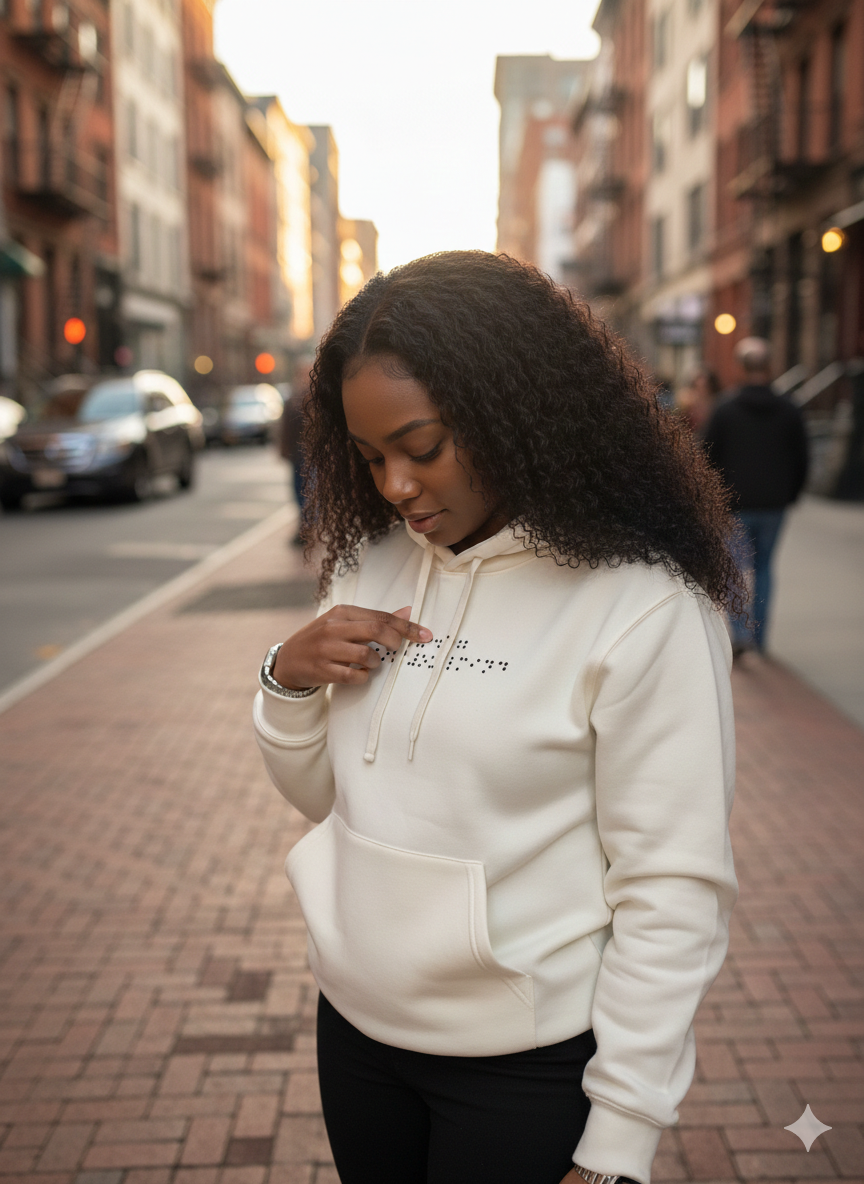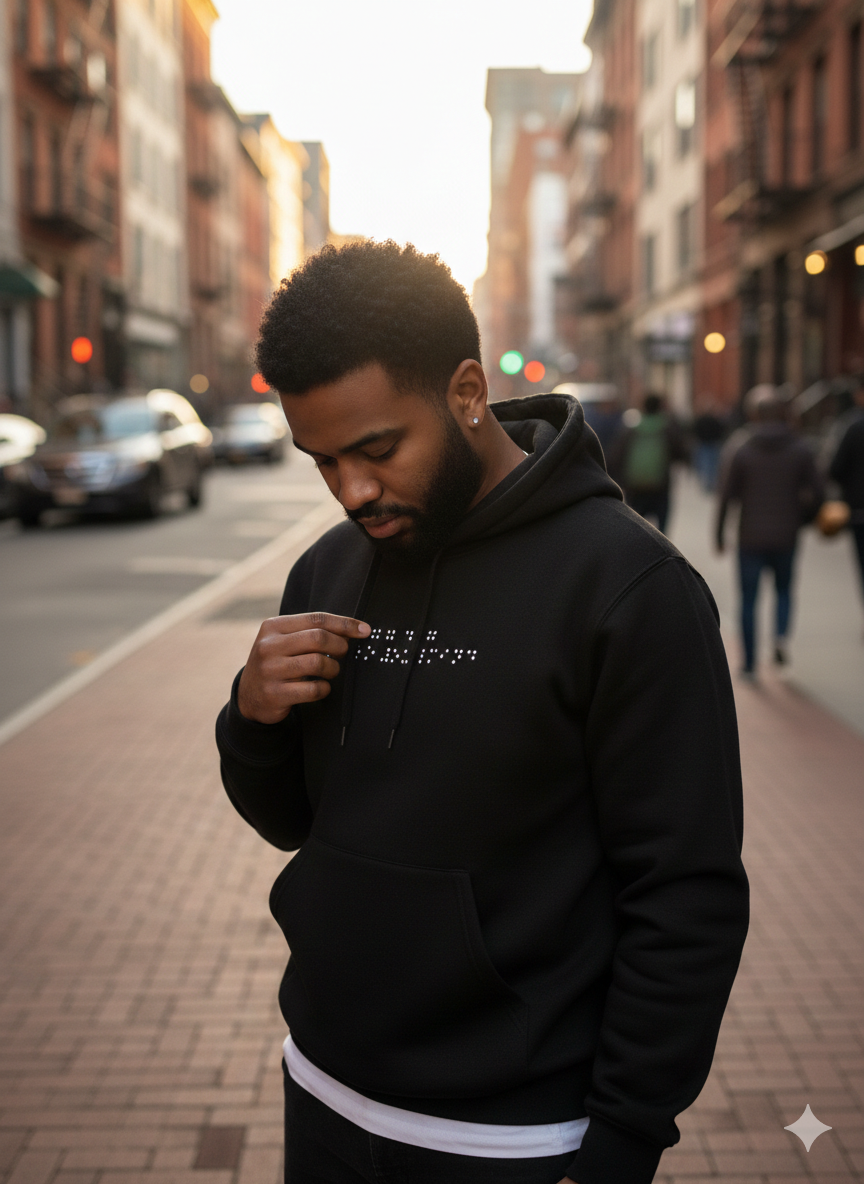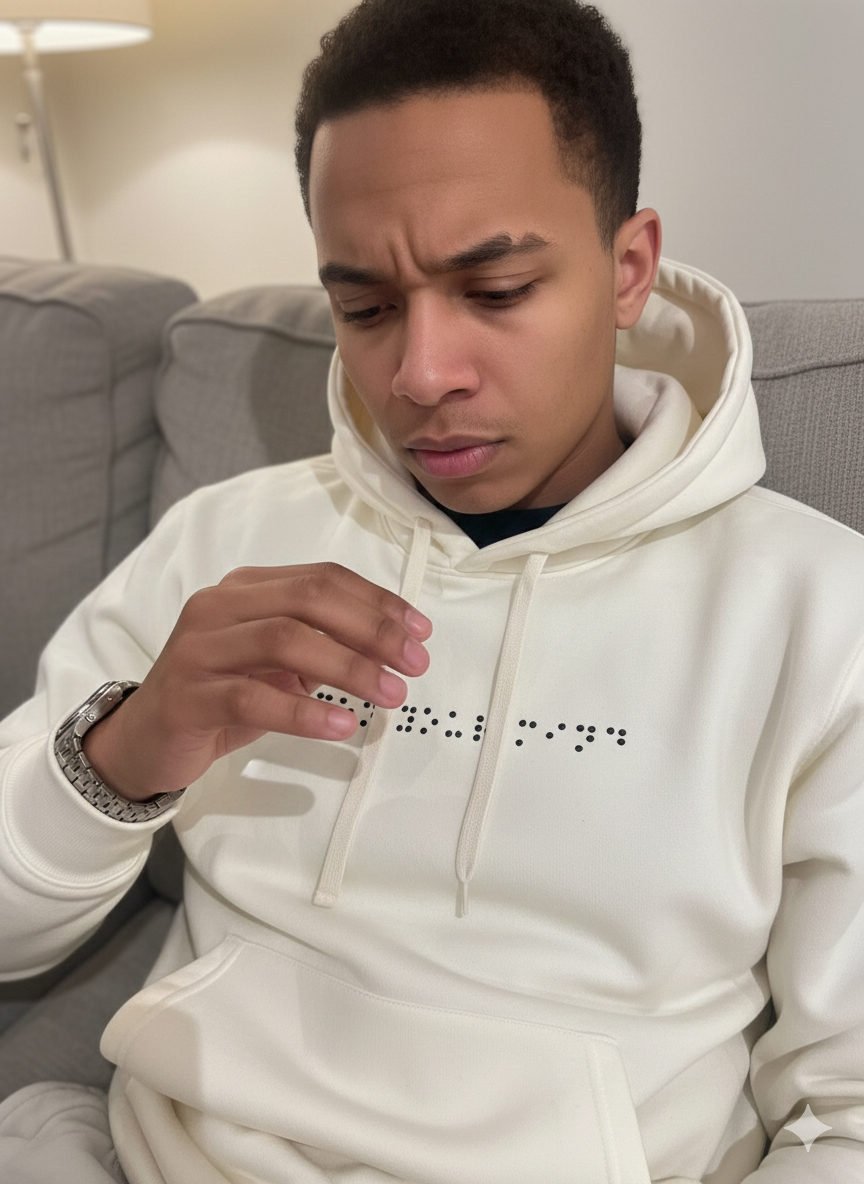 Notre sweat à capuche allie confort et mystère avec un message en braille unique, renfermant un secret à découvrir. Fabriqué en coton 100%, il est parfait pour toutes les occasions. En choisissant ce vêtement, vous soutenez également des associations caritatives, car notre marque reverse 5% de ses revenus aux œuvres de bienfaisance pour les communautés au Maroc. 🇲🇦 Ajoutez une dimension significative à votre achat tout en arborant fièrement le drapeau marocain.
